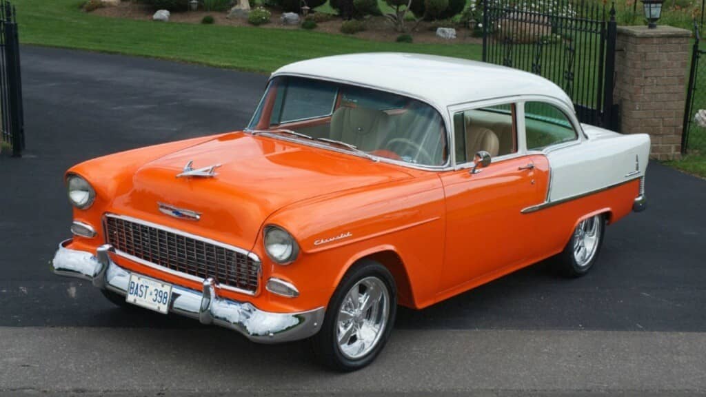 - It’s not a new car by any means – in fact, it’s close to mandatory retirement age – but the only thing missing from this 1955 Chevrolet 210 in Tangelo Orange and Snow White is a popsicle stick. There’s only a single one on the plenty, but it looks good enough to lick on a warm fall day.