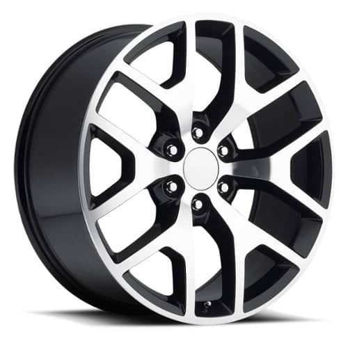 Elevate your ride with the stunning Factory Reproductions FR 44 GMC Sierra wheels in Black Machined Face finish. These premium wheels are the perfect blend of style, craftsmanship, and performance, designed to transform your vehicle's appearance and enhance its overall appeal.