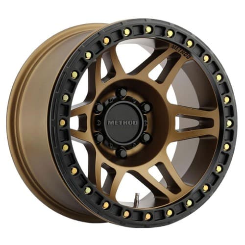 The Method 106 Beadlock wheels are the ultimate choice for off-road enthusiasts seeking to personalize their vehicles. These wheels not only offer a striking aesthetic but also deliver the durability and performance required for adventurous driving. Experience improved control and stability on challenging terrains while turning heads with the bold, Bronze finish.